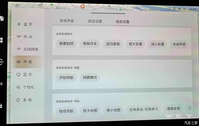 该功能默认打开“唤醒后支持”。在车机界面中,随时唤醒小魏同学,说出屏幕中的某个功能控件名称,即可执行“点击”操作,代你执行。