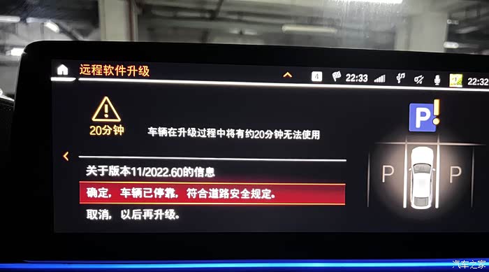 今天下班的时候,突然手机App收到了车机软件升级的通知,于是赶紧进行升级。