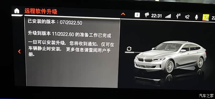 总体感觉6GT的车机升级比较简单,过程也很流畅。但就是不知道升级解决了哪些问题,又有哪些改进提升——有说明,每个字我都认识但就是不明白。可能bmw是故意的吧。哎!