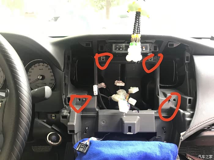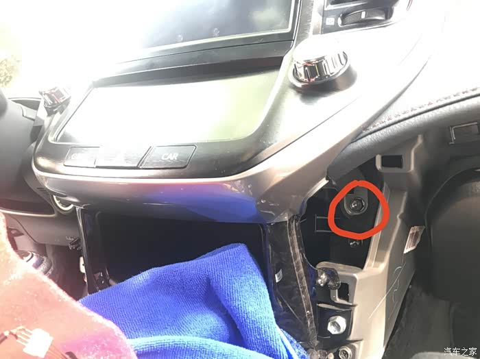 拆除中控两边的侧板,没有螺丝,直接徒手扣开往上拉,拆开后可以看到每边有个固定中控的螺丝