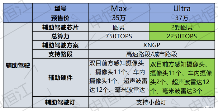 增程与纯电版本有什么区别:就是把英伟达芯片换成一加的图灵芯片,算力提升了、新增小蓝灯。顶配多了一个车内摄像头。