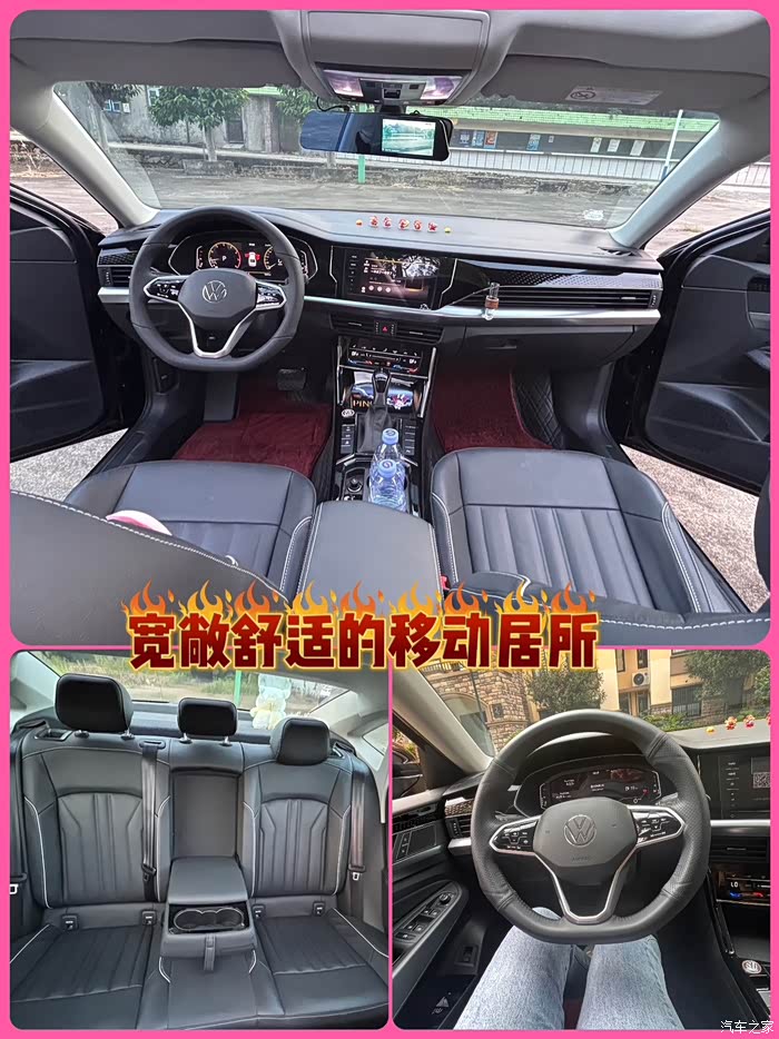 步入帕萨特车内,第一感受便是宽敞舒适。前排空间极为充裕,无论头部还是腿部,调整至合适位置后,以我170的身高,伸展起来也游刃有余。车内储物布局丰富,收纳雨伞、水杯等随身物品十分方便。后排空间更是令人惊喜,即使三位成年人同坐后排,也丝毫不觉拥挤。腿部空间宽敞得足以轻松翘起二郎腿,头部空间也足够高,毫无压抑之感。此外,后排还配备了扶手杯托、独立空调出风口以及 U*** 充电接口,进一步提升了乘坐体验的舒适度。后备箱空间同样十分可观,能够轻松容纳多个行李箱及其他物品。无论是一家人出门旅行,还是日常购物,都能满足储物需求。帕萨特宛如一个宽敞舒适的移动之家,为出行营造了温馨的环境。