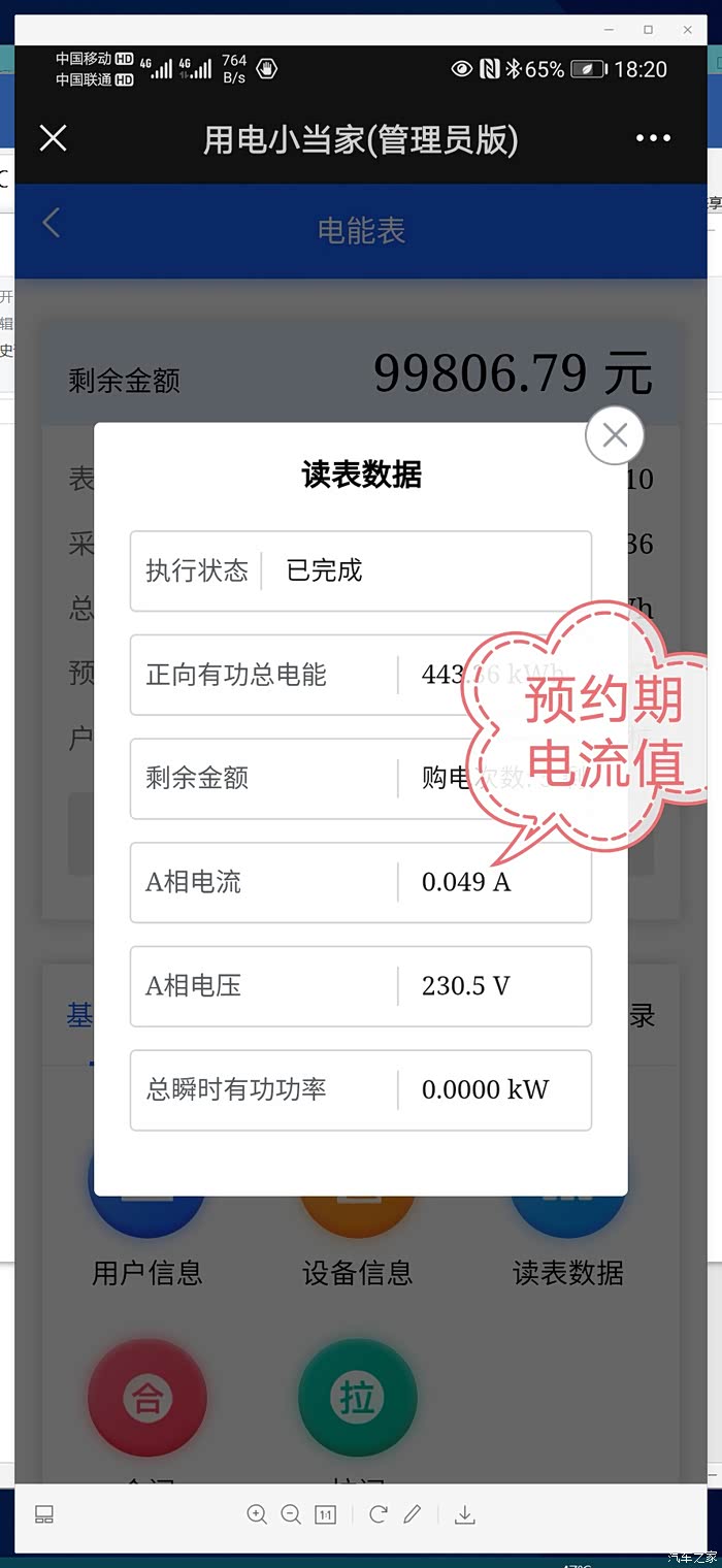 低电均衡方式下,读取电流表中的电流值,显示为0.05A,不知道这个电流是充电桩待机电流,还是低电均衡(如果有的话)所消耗的电流.