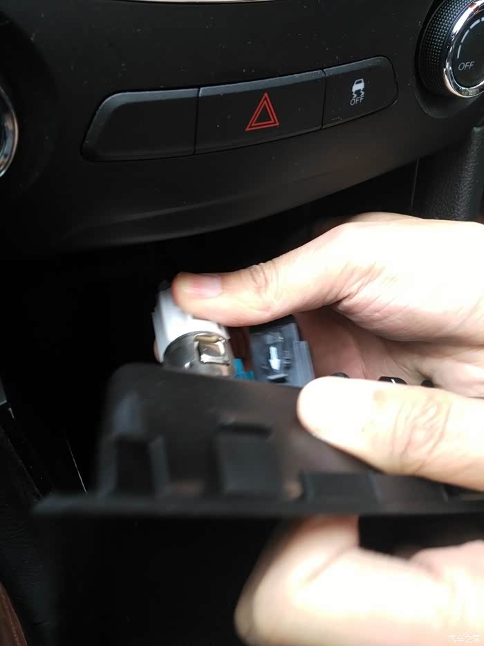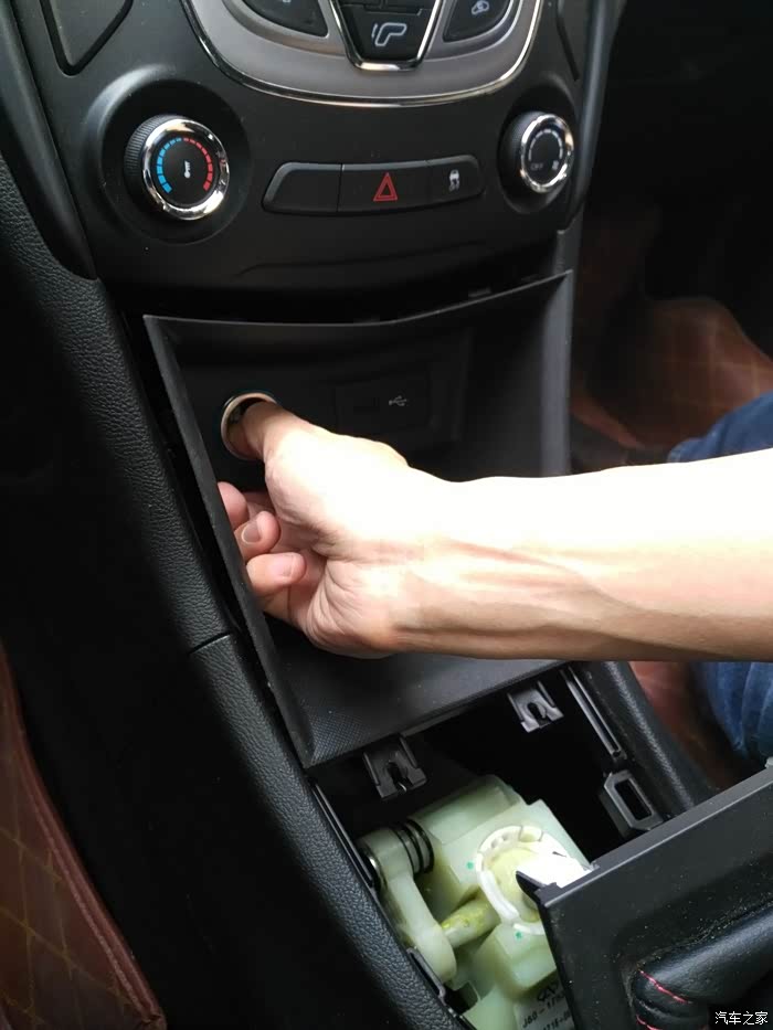 拉出来以后动作就要慢了,因为里边有连线。不要拉坏了。把点烟器的线卸下来。