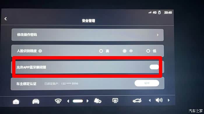 高配:车辆控制~身份认证~安全管理~允许APP蓝牙解闭锁,一定要打开!