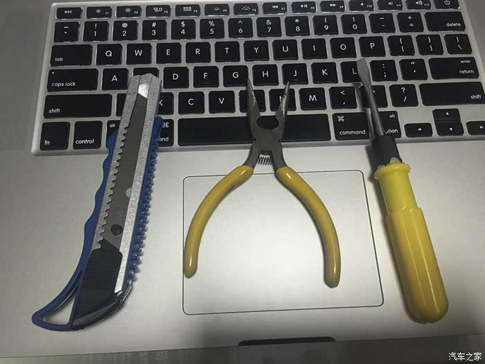 先看一下我们要用到的工具:平头螺丝刀,裁纸刀,小钳子;实际上成功后会发现只需要用到平头起,其他两样都是辅助帮忙;