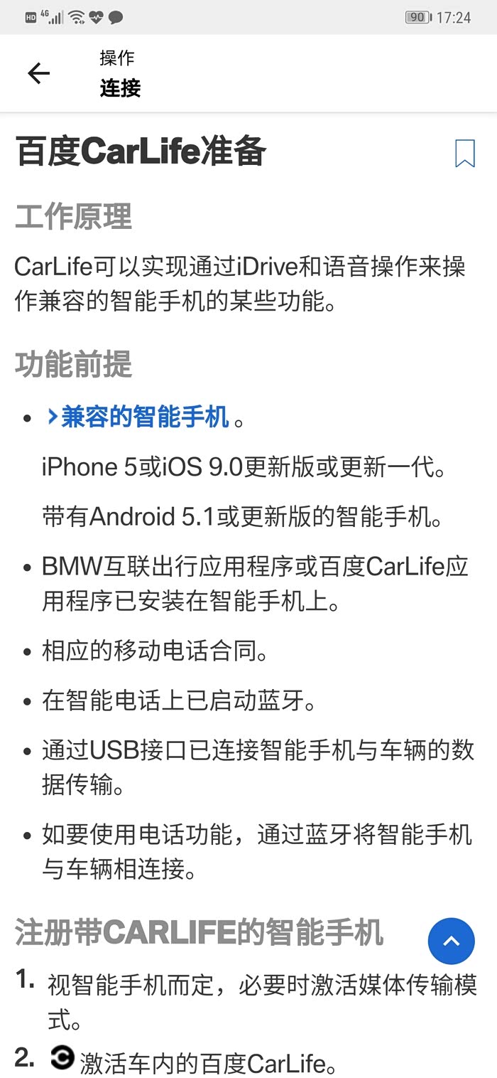 简单说就是如果宝马支持carlife,而你用的又是安卓系统的手机,那么就可以汽车和手机互联了。否则,如果只是carplay,要么换苹果手机,要么只是使用投屏功能