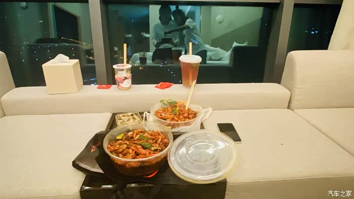 晚上同住的小姐妹也来了,奶茶小龙虾安排起来~