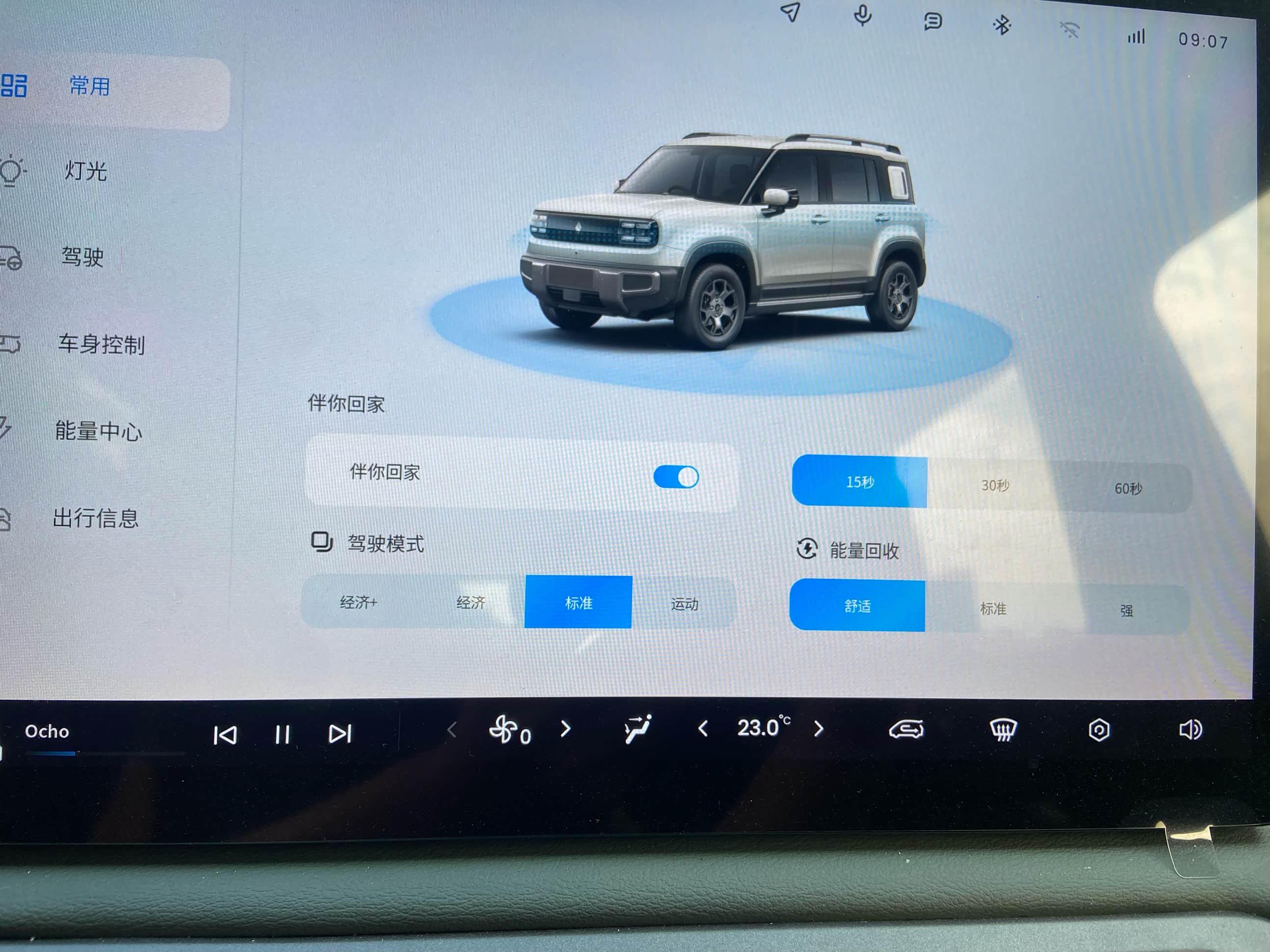 能量回收有“强、标准、舒适”三档可调,我现在市区基本开舒适模式,松开电门滑行距离长,兼顾回收电量还不顿挫,家里老人坐车也不晕车。上次跑城郊长下坡切了标准模式,不用频繁踩刹车,安全感满满。底盘避震方面也调校得很舒服,过减速带或路面小坑洼时,能过滤掉大部分震动,车身不晃,坐在车里挺稳的。
