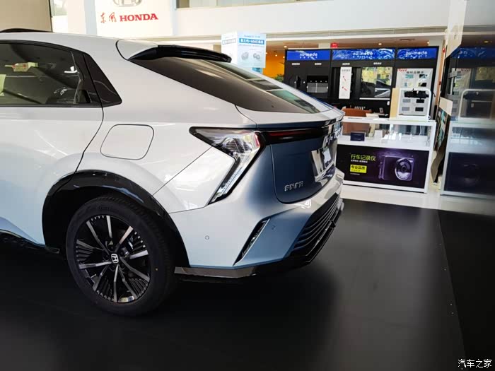 有一说一,东风本田猎光e:NS2的外观在电动车里颜值是真高,现在很多电动车为了降低风阻,都将线条设计的圆润简单,看多了那样的设计,东风本田猎光e:NS2这种锋利且科幻的造型让我眼前一亮。