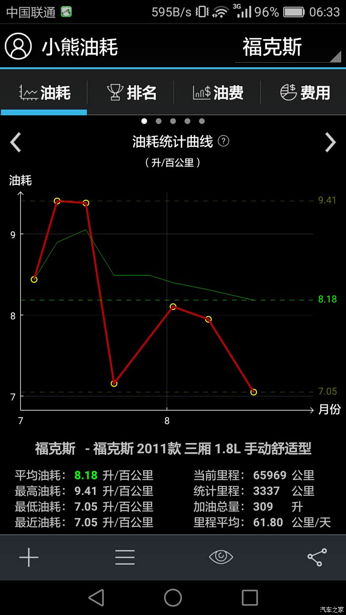这段时间合肥地区气温不高,只有到中午、下午才开空调,多数路段是三人乘坐,基本是在高速上行驶,县道省道行驶里程不到100KM,只有在8日中午在合安高速万山至包河大道经过较拥堵路段,表显69KM路程用时约 2 小时+ ,本次平均油耗6.9L/100KM ,这样油耗水平超出我期望值。