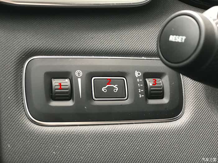 这个是灯光控制区域,从下到上,分别是灯光关闭,示宽灯开启,大灯开启,自动灯光,和自适应远近光(我这个配置没有这个功能,型PRO以上有),右边从上到下,是前雾灯和后雾灯。