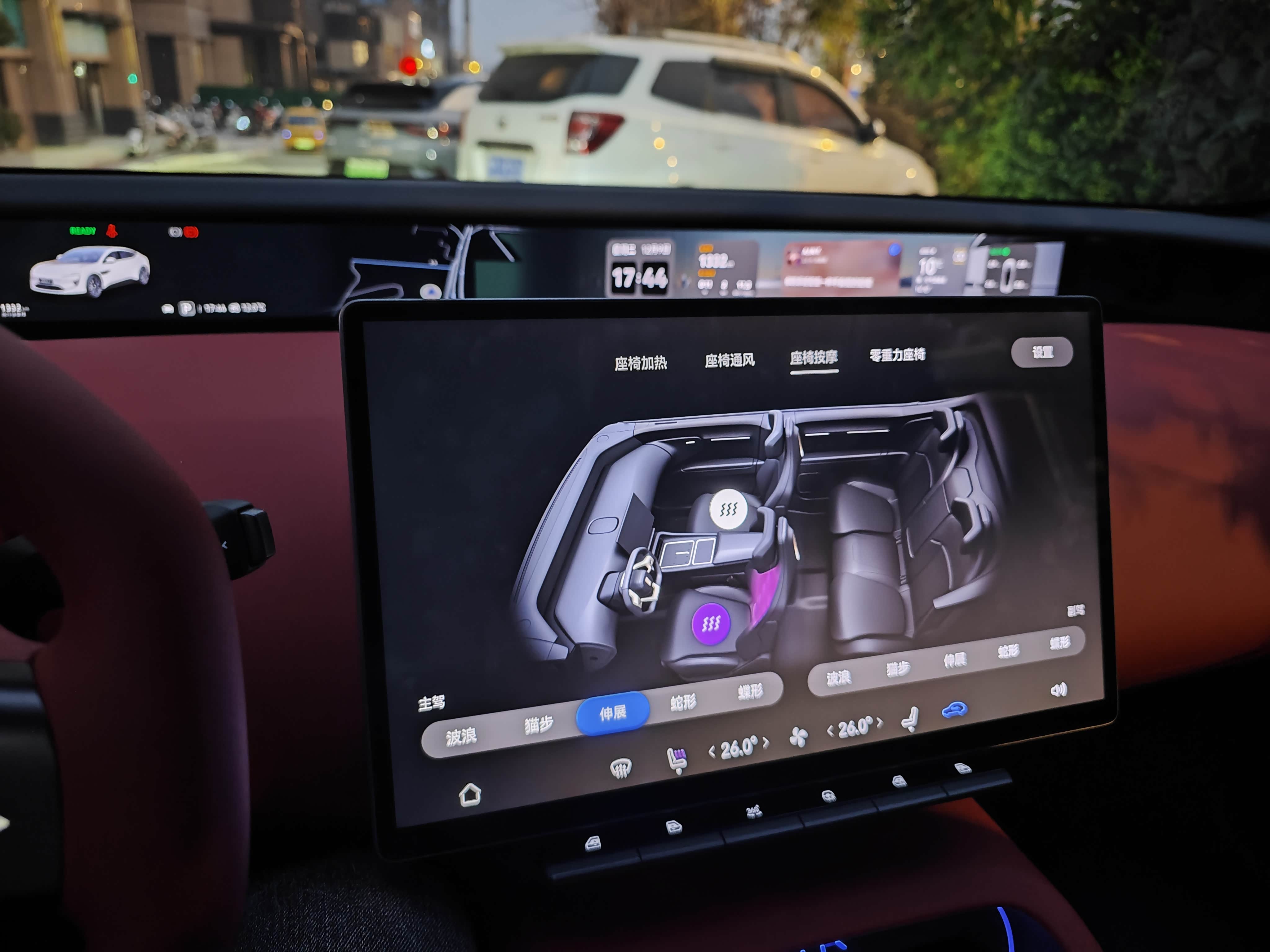 跑高速或者路程较长的时候,虽然智能驾驶可以减少司机的驾驶疲劳,但长时间的驾驶还是难免会有腰酸背疼的感觉,这个时候可以开启前排的座椅按摩,一共有四五种按摩方式可供选择,虽然比不上按摩椅,但也能在一定程度上缓解腰背不适。