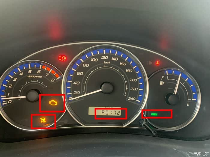 仪表亮发动机灯、车身电子稳定系统警告灯、巡航灯,仪表调出故障码P0172