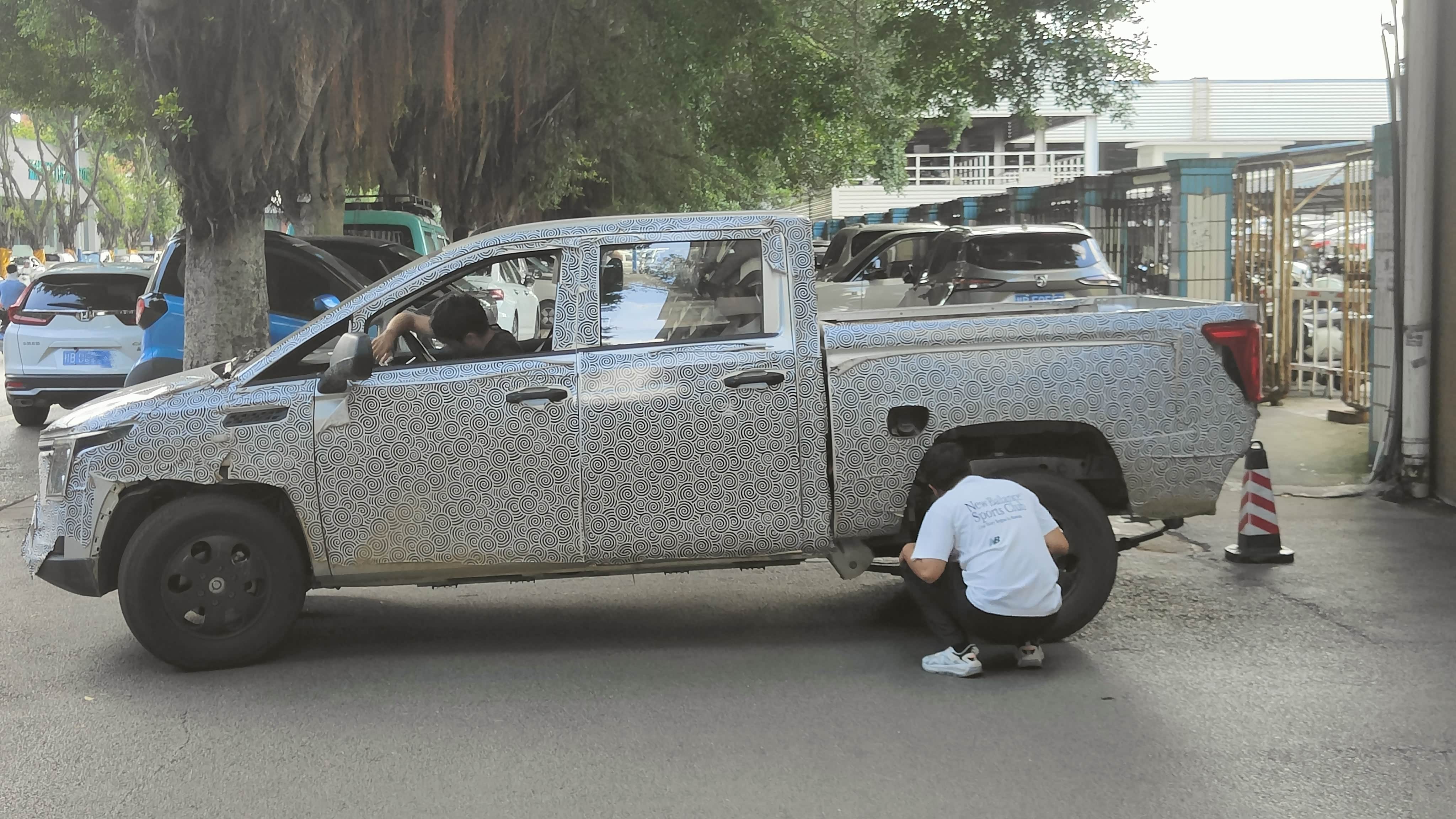 今天去五菱办事 ,看到门口有这样一辆皮卡 ,搭讪司机师傅 ,说是油电两用。