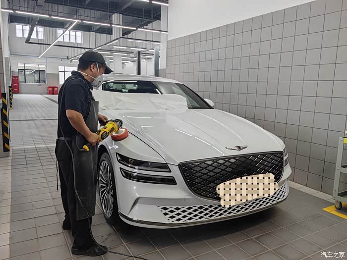 和他们的油漆师傅闲聊了一会,才知道原来是个有10年以上奔驰品牌油漆老技师,做事确实仔细,把车子保护的很好,不让抛光的脏东西飞到玻璃上,影响雨刮,刮不干净。施工过程中,反反复复各个角度检查。