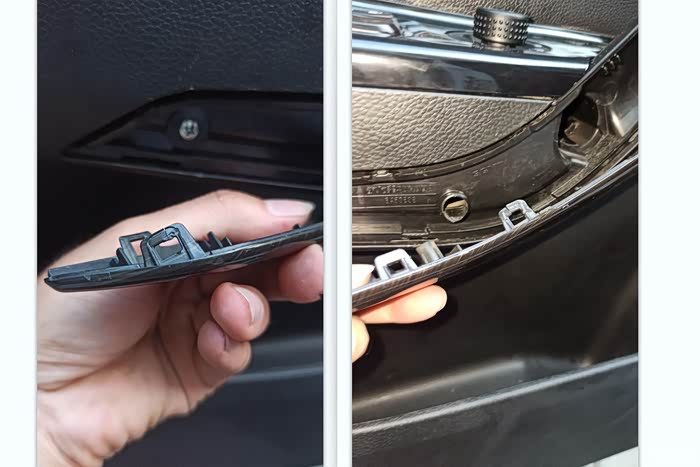 1、拆掉门上小盖部分(全部卡扣 大力出奇迹) 2.拆掉拉手装饰盖(全部卡扣 大力出奇迹)装饰盖的卡扣设计不太合理 拆开基本都会坏掉几个的