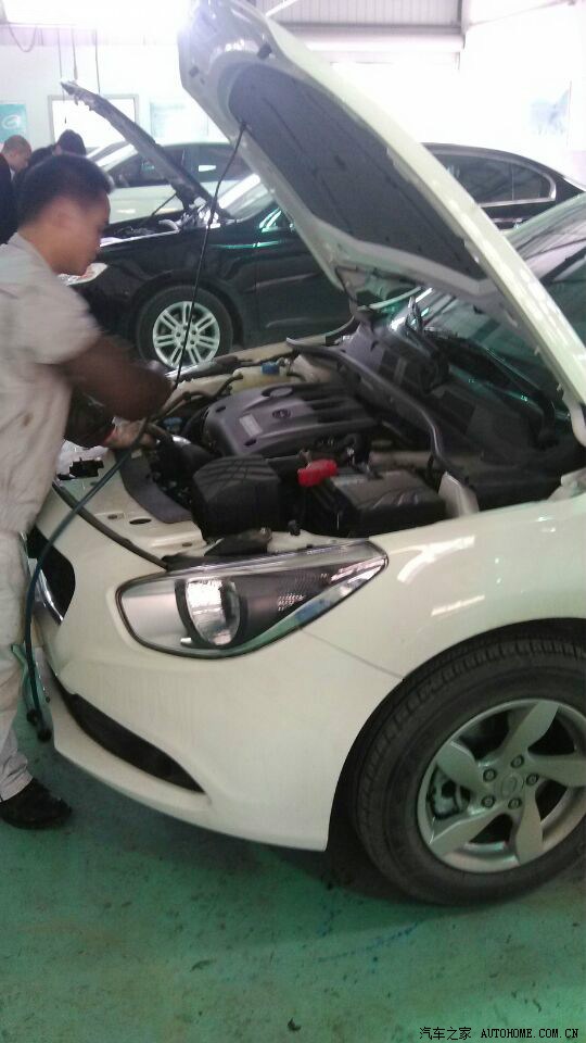 这三张图是师傅简单的清理一下发动机舱,就是把灰尘吹掉。自己以后也要经常自己搞搞 哈哈。