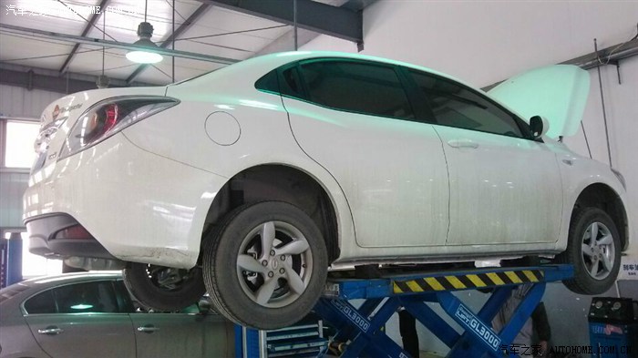 车子被升起来了。准备换机油了。小三就像一个待宰的羔羊