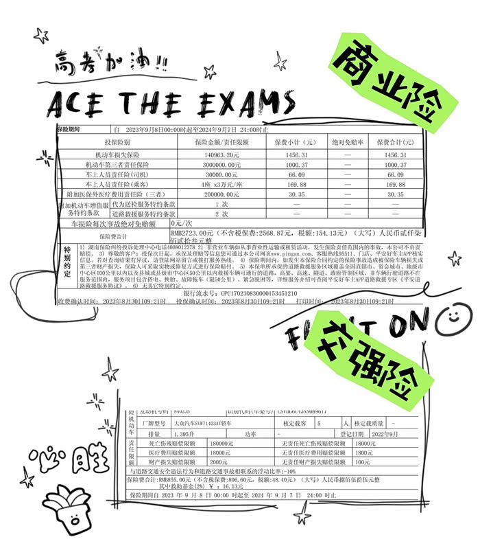📝📝保险费:保险费用有两笔开支,分别是去年九月提车的新车保险和今年九月份的续保。新车保险在4S店买的全险,交强险950元,商业险3600元,其中三责三百万,优惠后4100元。今年续保是自己在外面买的,由于没有出险,所以享受了一点折扣,交强险855元,商业险2723元,三责也是三百万,优惠后3178元,送两个油漆面和一次全车打蜡。保险为:4100+3178=7278元。