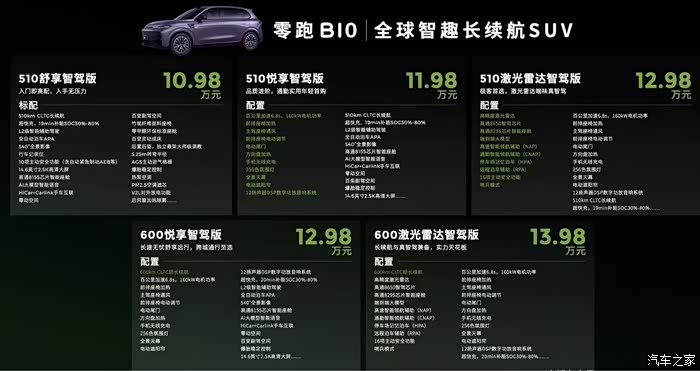 首先,在价格和智能驾驶配置上,零跑B10展现了明显的性价比优势。其入门级车型售价仅为10.98万元,而12.98万元和13.98万元的版本则配备了激光雷达和城市高阶智驾功能。相比之下,广汽丰田铂智3X的入门价格为12.98万元,但高阶智驾版本售价则高达14.98万元和15.98万元,零跑B10在价格上领先1万元。