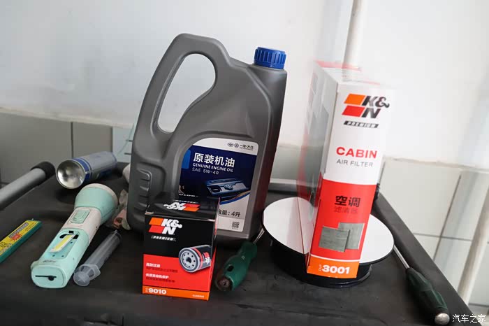 这是我这次保养套餐:原厂机油、KN机滤和KN空调滤。