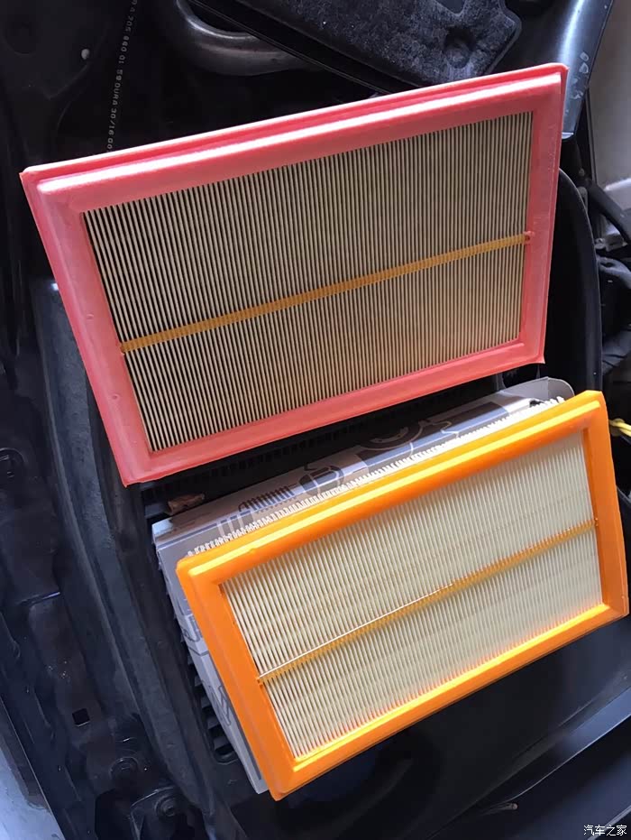 一万公里对比,有点脏了(A保不换),拿出来把新的塞进去就行。然后盖上盖子拧上螺丝就完毕了。内空调滤芯不建议大家自己换,其一是两万公里换个就行,其二就是非常费时费力,还不一定能拆装好,这点功夫掏点钱可以去家近的修理店把三个换了,有兴趣的朋友可以看我发的视频教程,也可以私聊我