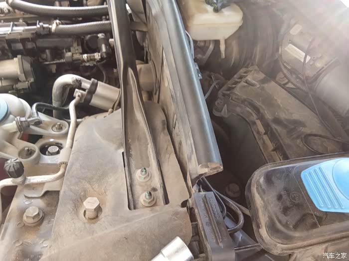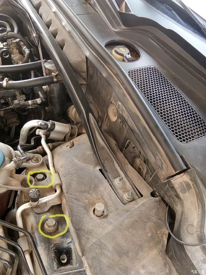 还有2个是在护板的下面,需要把护板打开。这个塔顶的螺丝需要用16mm的套筒扳手。里面2个而且是需要套筒加长了才能拧的到。身边正好没这个尺寸的,怎么办呢。只能用17mm的拧。外六角的大1mm问题不大。成功拧下。