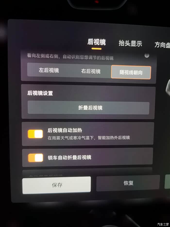 🌧 外后视镜智能加热:下雨天不用再手动开启后视镜加热了,现在001可以自动感知雨刮开启60秒后自动开启后视镜加热功能,快速除水保障下雨天安全行驶真是太智能了!