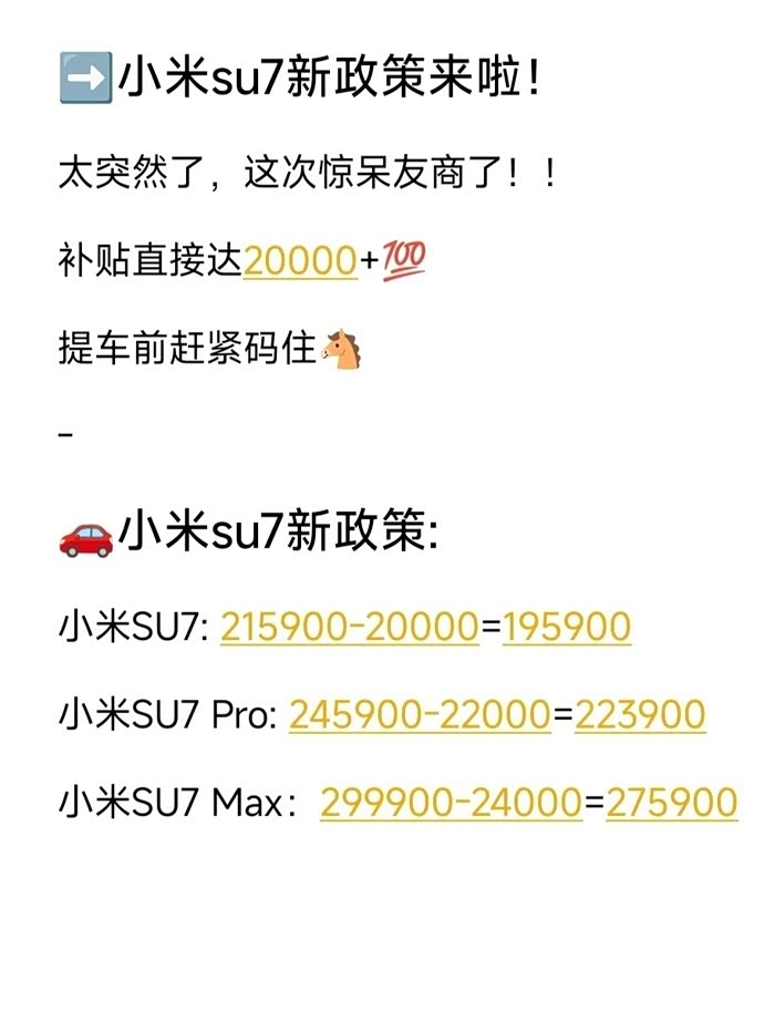 🚗小米su7新政策: