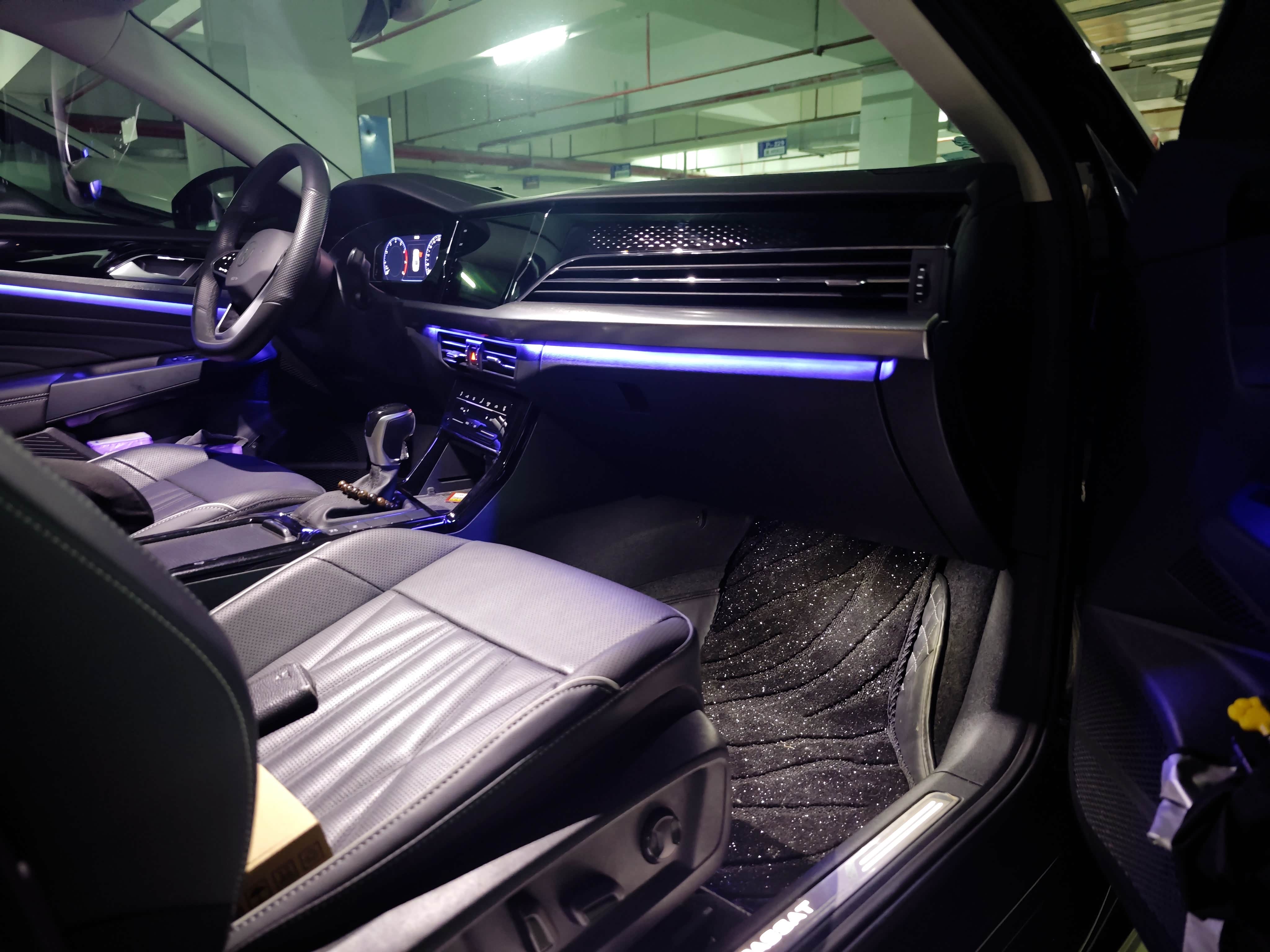 我这款帕萨特是2023款豪华版的,它是有一个原厂自带的十种颜色的氛围灯,但底下的脚窝灯就是那种白白的暖光。