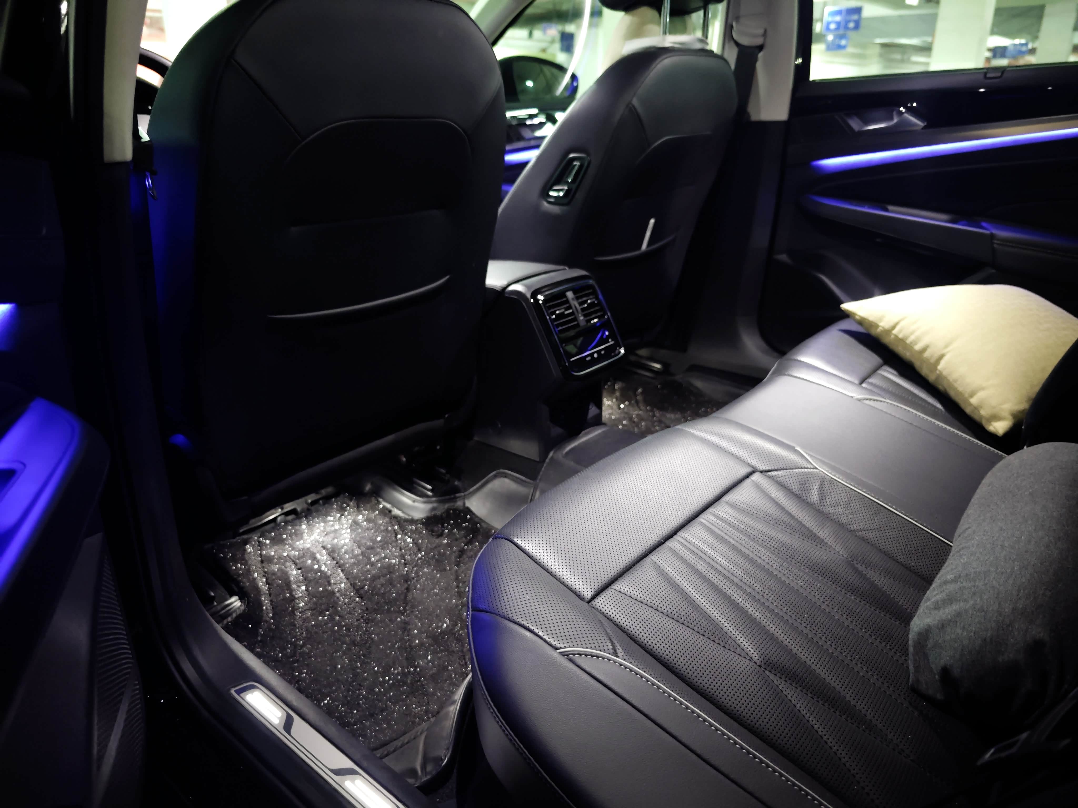 第二步:就是安装新的七彩脚窝灯,他的前排脚窝灯要比原厂的要更大一些,所以它会露出在外面,不能卡到原车孔,没有那么完美的无缝对接。