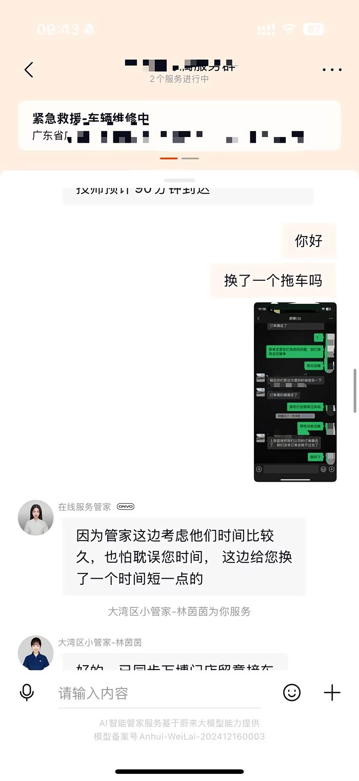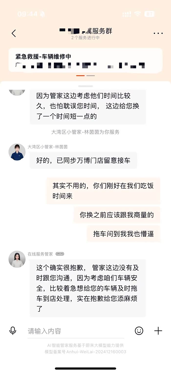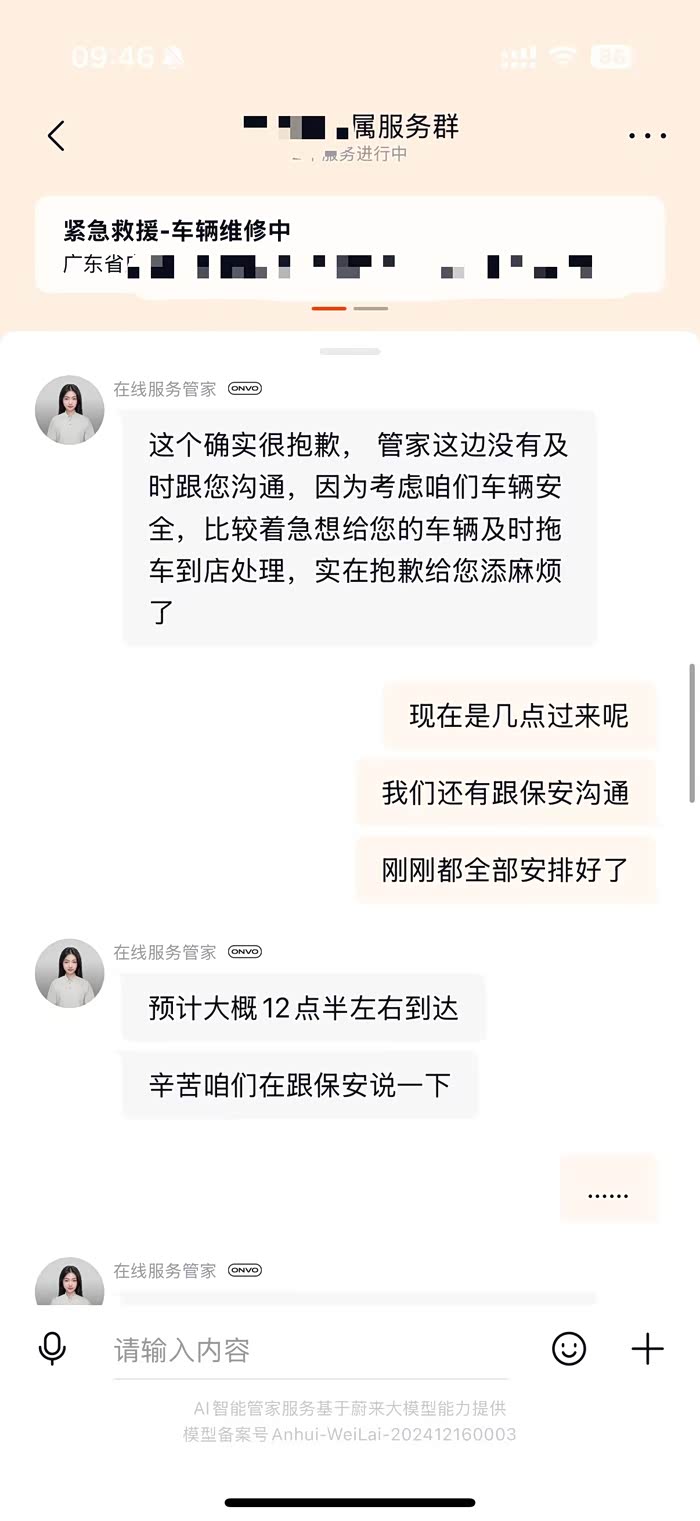 先补个上次没说的 “拖车惊魂”:10 月 16 号车子因动力故障趴窝后,联系广州京溪蔚来售后要拖车,结果全程混乱到想骂街!