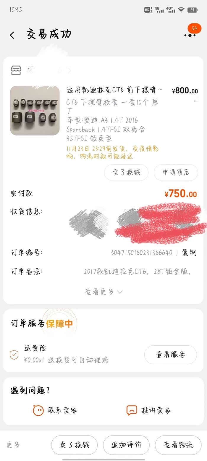 11、维修前面两个电磁悬挂,维修费每个500元,一共1000元。还卖了一对儿避震器防尘套,80元。