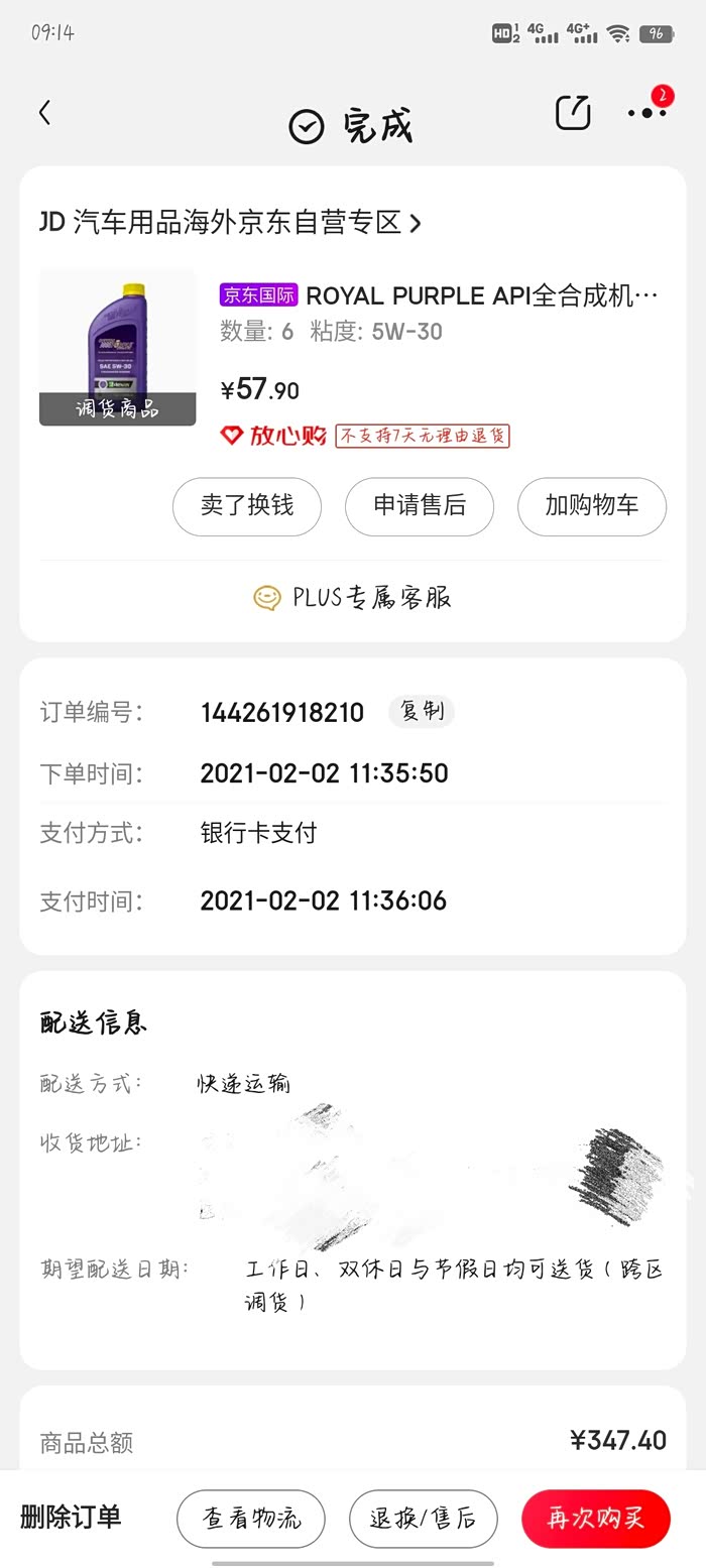 4、冷却液:通用原厂零下45度冷却液,一桶4L装98元,我买多了一桶,就当冲洗了,实际一桶就够。