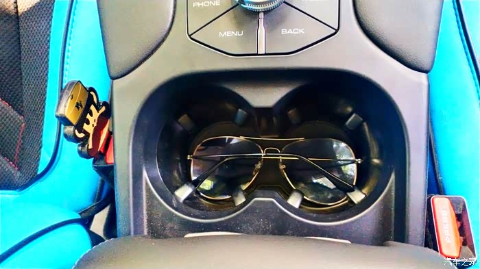 T型的工作台最后端拥有两个水杯架,可以放置主副驾人员的水杯,还有一个功能就是钥匙感应。据说2021款这个地方有一些改动。