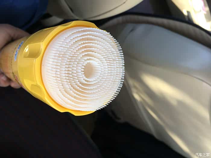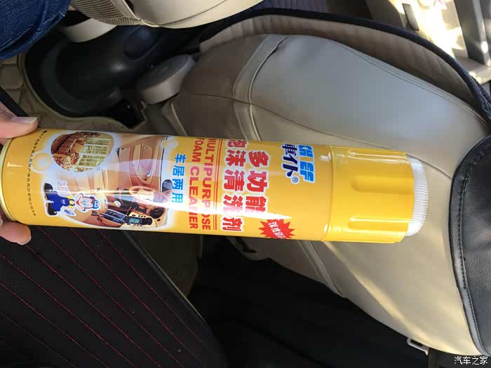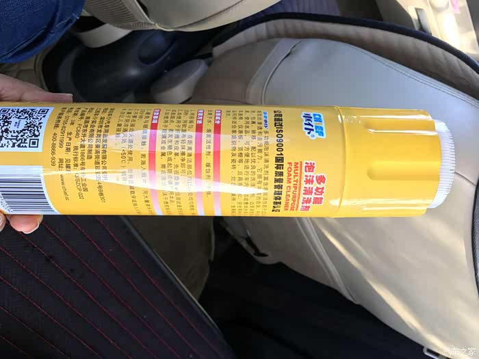 这次评测的产品是车仆多功能泡沫清洗剂,顾名思义,它就是用来清洁车辆内饰的,瓶身上写的是车居两用,说明还可以用作家里的沙发清洁,车陂清洁剂平生下方写着“本产品由中国人民财产保险股份有限公司承保”,但是没有写具体承保的范围,是承保防止瓶子炸了?还是把汽车内饰洗坏了?还是对人体的伤害做承保?多功能泡沫清洗剂富含表面活性因子,因此具有高效的渗透和去污能力,他拥有丰富的泡沫,将污垢吸附包裹和转移,配以优良的洗涤剂,达到深度清洁效果,使用本品,可方便的进行车内部或整体的清洁车辆座椅,仪表板,顶棚等,具有温和安全等特点,本品同样适合家庭织物及瓷砖、灶台、桌椅、金属器皿等的清洁。清洁效果非常棒,我用它清洁了一下后座头枕上的污渍,很轻的按一下就出来好多泡沫,然后再用袋子上自带的刷子进行刷洗,只刷了两下,所有的脏东西全下来了,粘满了整个刷子,很恶心!看来咱们的车还是要多清洗,表面干净,其实则不然。用这个可以清洗仪表台,可以清洗顶棚,可以清洗内饰板。坐在后排的时候难免会抓一下或者敷一下前排座椅靠背,所以前排座椅靠背比较脏,今天正好拿这个泡沫清洗剂来试试,看看它的清洁作用如何,效果还是不错的,需要注意的是使用前一定要摇匀,在距离清洁部位约15厘米处均匀喷射,保留期15秒钟,用软湿布轻抹擦净即可,如使用于纤维和皮革,先在隐蔽部位测试是否会造成损伤或引起斑点,如果使用于玻璃或者金属表面需要在清洁泡沫干透前抹去泡沫