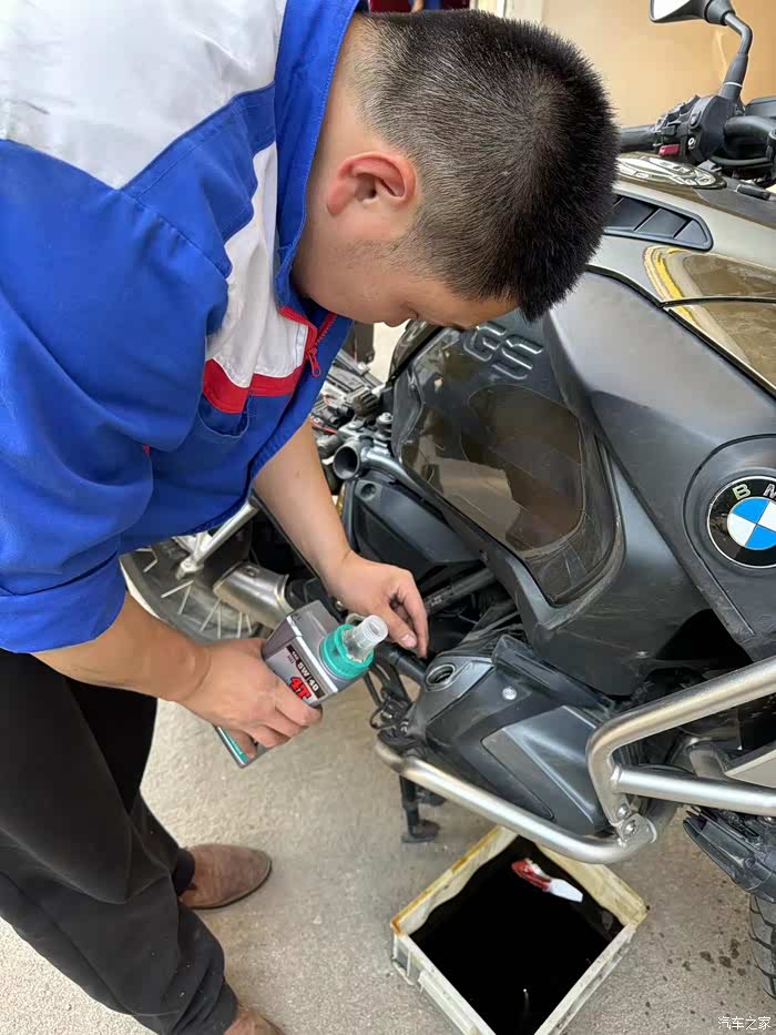 还是摩托瑞士的5-40全合成机油,因为放油比较彻底,加了3.9升,费用是400元;
