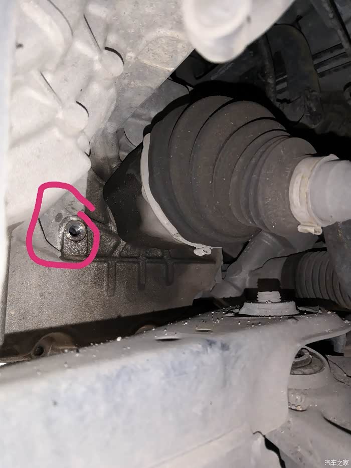 我是14年3月的车,变速箱油位螺丝位于左侧半轴前方,外六角螺栓。后期的变速箱有些变化,螺丝位于左侧半轴后方,是内六角的。