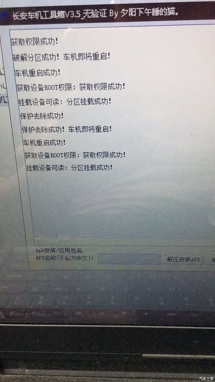 五,分别点击“破解分区”,“去除保护”,“获取权限”,在都提示成功之后就说明车机破解成功,可以对车机的软件进行卸载和安装了。