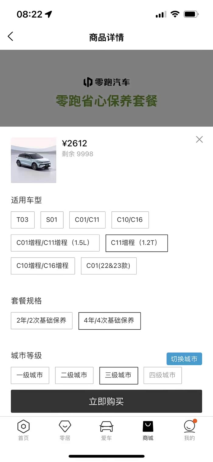 为了避免排队,可以在零跑app上预约保养的时间、选择适合的门店。但是随着零跑销量的提升我发现现在的预约服务很难预约,门店基本都是“已约满”,所以这里还需要优化!