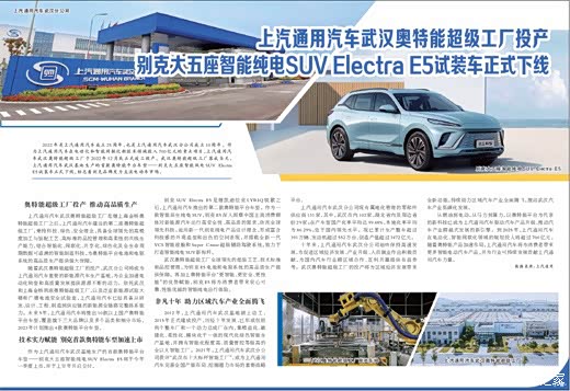 2022年是上汽通用汽车成立25周年,也是上汽通用汽车武汉分公司成立10周年。作为上汽通用汽车在电动化和智能网联化新技术领域投入700亿元的重点项目,上汽通用汽车武汉奥特能超级工厂于2022年12月底正式竣工投产。武汉奥特能超级工厂落成当天,上汽通用汽车武汉基地生产的首款奥特能平台车型——别克大五座智能纯电SUV Electra E5试装车正式下线,标志着别克品牌发力主流电动车市场。