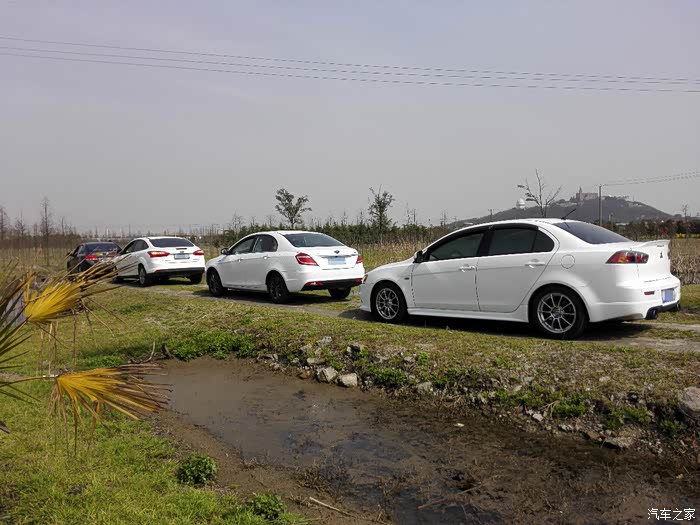 我们先找了个没啥车的地点碰头,大家都很准时,先后20分钟都到了,没让先来的久等。简单介绍一下,四车分别是我的小福(福克斯)、(翼神)、(帝豪)和(科鲁兹),三个车都是白色,就科鲁兹是灰色的,太不合群了,哈哈。