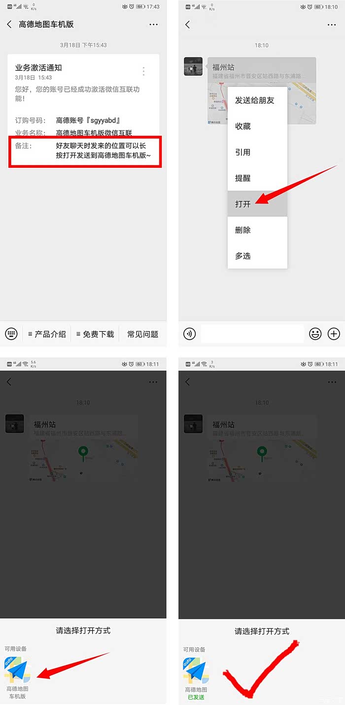 手机微信→车机高德