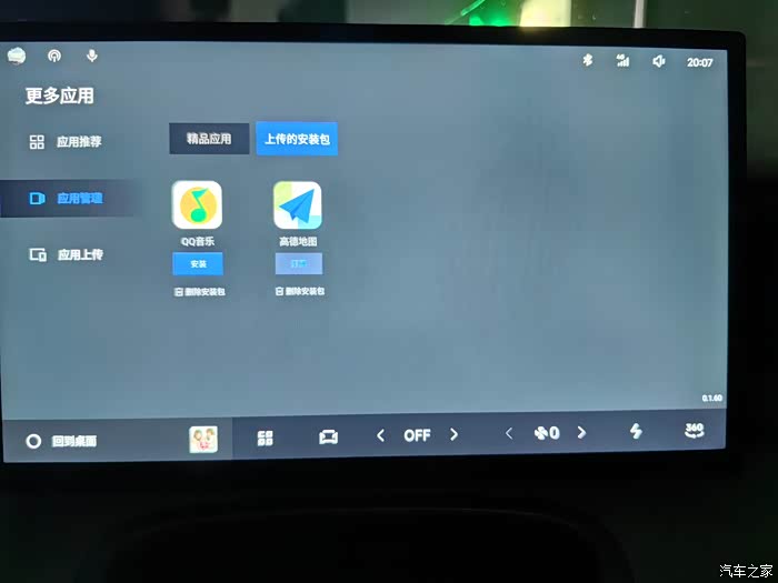 第三步:回到车机系统里的无界空间,进到“应用管理”,选择“上传的安装包”,安装之前上传的地图软件。