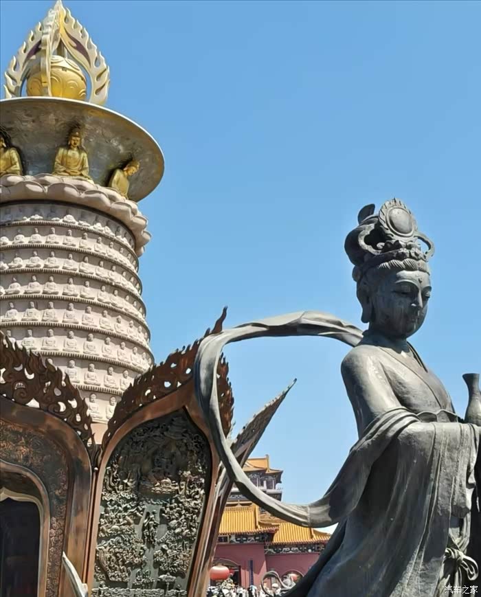 第一站直奔宝莲寺。清晨的寺庙安安静静,红墙金瓦衬着蓝天,拍照特别出片。带孩子看了庄严的佛像和宏大的观音阁,他看得眼睛都直了。寺庙的素面一定要尝,汤底清润,菌菇鲜得很,一碗下肚浑身都暖了,刚好给我们娘俩垫垫肚子。