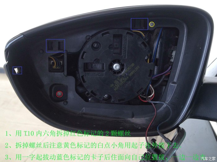 DIY自己动手拆解并更换左后视镜后盖、镜片框、LED灯