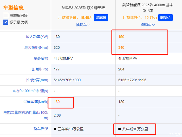 网上对比了看了下,其实这两款车大小、配置都差不多,菱智新能源可能整车质保更给力,八年16万公里,E3是三年10万公里,电机的功扭略强,150kw/340N·m,E3是130kw/320N·m。