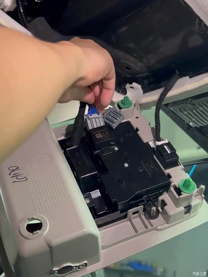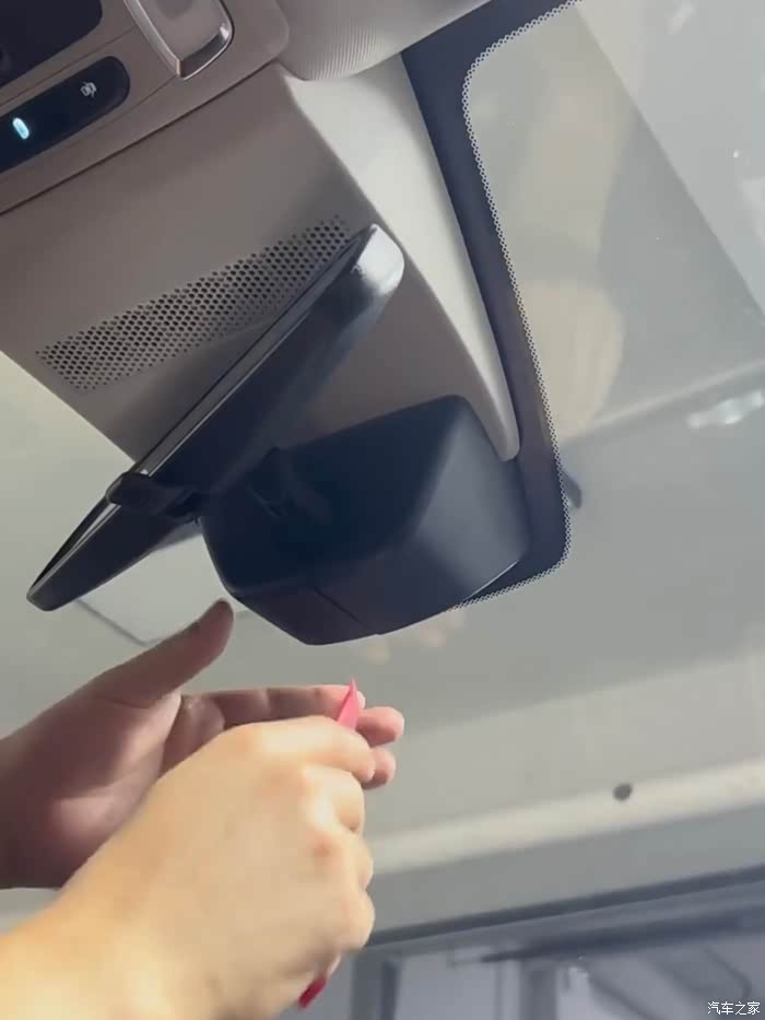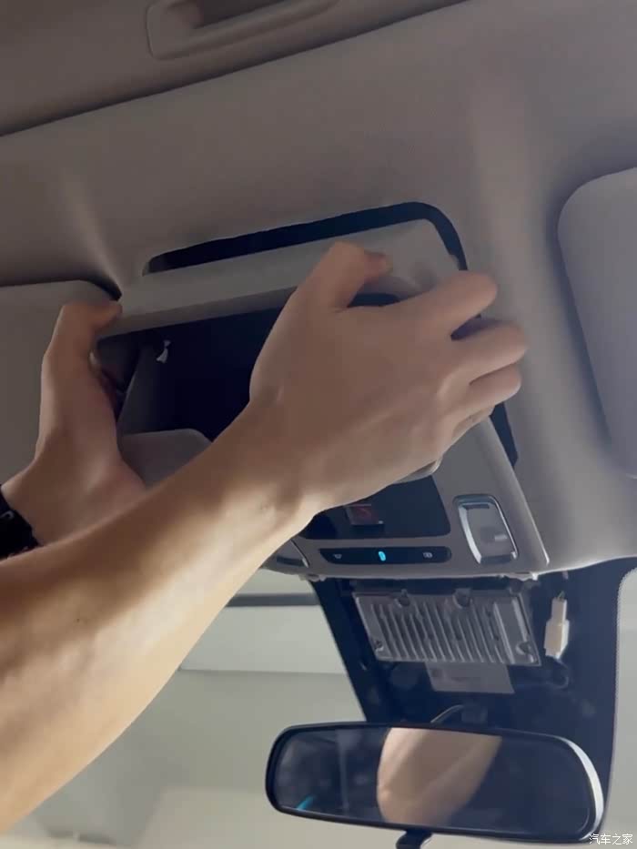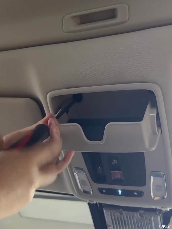 上面灰色的板子也要拿下来,安装记录仪穿线到阅读灯内是从上面引线