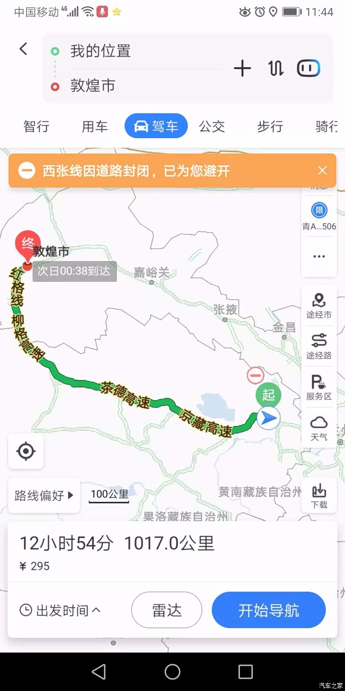 第一天、西宁至敦煌。今天的任务简单,就是用一天的时间赶到大海道的出发点敦煌。全程1017公里,计划用时12小时54分。